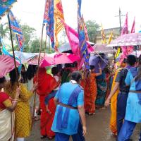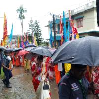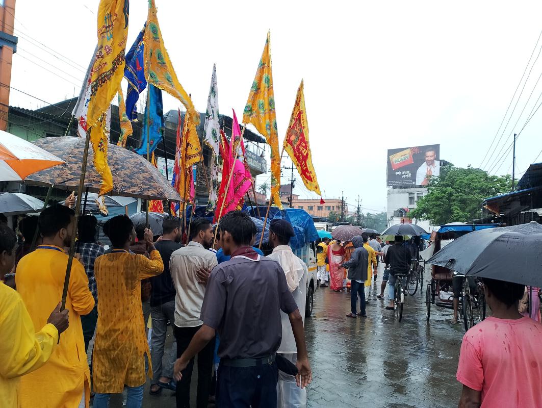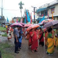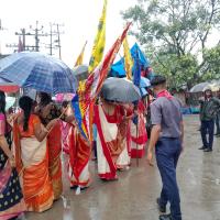 We the members of the Bharat Scouts and Guides, Northeast Frontier railway, Tinsukia District Association reached the project site, we handled a huge crowd and maintained law and order in the procession, that day it was RAINING HEAVILY still we rendered our service towards our community.