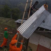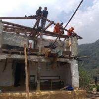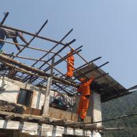 Restoring wind storm-struck houses at Chhudzom Gewog