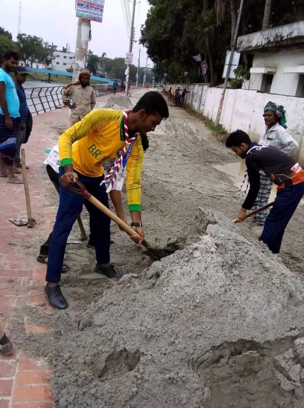 As a result, the people of the area will get the opportunity to travel safely. The work will be completed quickly as the scouts are working as well. Unfortunately the road has become impassable due to flood damage. So besides the workers we are also working as scout members