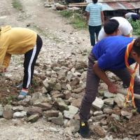 "My community before myself". Amidst the COVID-19 pandemic, as a part of a good turn and to spread the message of peace, the scouts of the locality volunteered to help the community in the maintenance of road which was partially damaged by the rain/landslide and had potholes. The condition of the road gets worsened during the monsoon due to the continuous rainfall and it becomes unsafe for the vehicles to ply. The scouts were divided into smaller groups and alloted the area to fill up the potholes and make the road even and plyable. We have completed about 1km kilometre. The staff of Monmola Pry. School were also involved in the road maintenance work.