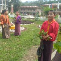 After the completion of Road to Peace, phase I and phase II, our project team kicked off with phase III, planting of flower saplings alongside the project area coinciding with the Birth Anniversary of His Majesty, fifth King of Bhutan, who is the patron of Bhutan Scouts Association and National Scouts Day by the community based scouts (CBS) and scouts of Phuntshothang MSS. An ornamental flower saplings of 1000 were planted which would really beautify the place where we live.