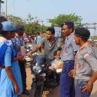 Total 100 no of Rovers and Rangers of Bargaon ITI college are creating awareness about traffic rule like use helmet and traffic signals meaning,Display short play to bring more awareness at Public gathering places and making traffic control over the traffic area of Nandankanan square,Bhubaneswar, Odisha.