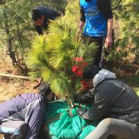 Root balling of pine tree