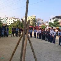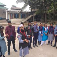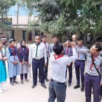 দড়ি দিয়ে রোভার স্কাউট গেড়ো সিখানো হচ্ছে।