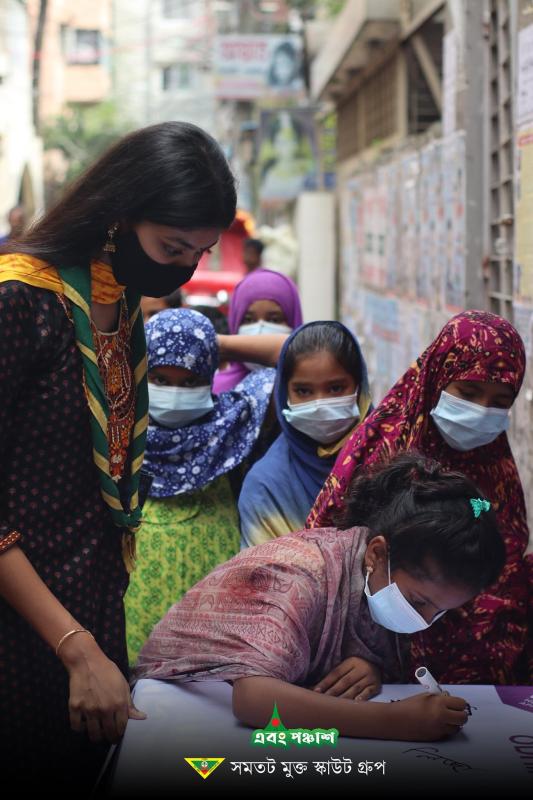 ৮ই সেপ্টেম্বর, ২০২১ সমতট মুক্ত স্কাউট গ্রুপের রোভাররা ঢাকার কমলাপুর, টিটি পাড়া এবং অধিকার বেস অফিসে সুবিধা বঞ্চিত এবং কর্মজীবী শিশুদের সাক্ষরতা দিবসের গুরুত্ব সম্পর্কে আলোচনা করার পাশাপাশি তাদের নিজেদের নাম, বাবা মায়ের নাম, জন্ম তারিখ লিখতে শেখায়।মোট ৩টি জায়গায় প্রায় ৬০ জন শিশুকে স্বাক্ষর করতে শেখানোর পর সাদা কাপড়ে সবার স্বাক্ষর এবং তাদের মতামত গ্রহণ করা হয়।পরিশেষে সকল শিশুদের সকালের নাস্তা এবং দুপুরের খাবার দেয়া হয়।স্বেচ্ছাসেবক হিসেবে ছিল ২৫ এর জন রোভার।যারা শিশুদের লিখতে পড়তে শিখিয়েছে।