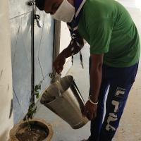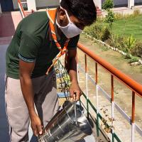 सार्वजनिक स्थानों पर लगे पेड़ पौधों में पानी डालना