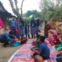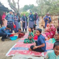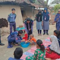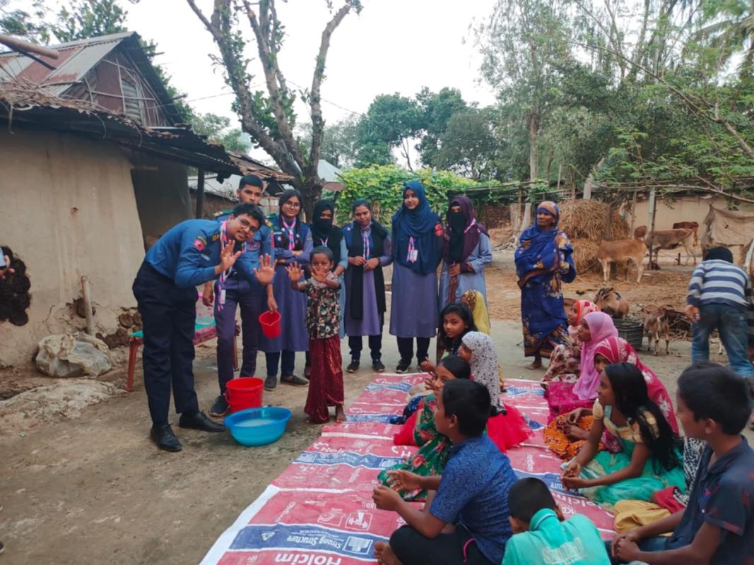 স্বাস্থ্য সুরক্ষা বিষয়ক আলোচনা করি।এবং হাত ধোঁয়ার সকল প্রসেস শিখিয়ে দেই তাদের। প্রথমে পরিষ্কার পানিতে হাত ভিজিয়ে নিতে হবে। তারপর হাতের পিঠ, তালু ও আঙুলে পরিমাণমতো সাবান ঘষে নিতে হবে। তারপর অন্তত ২০ সেকেন্ড ধরে হাত ঘষে নিতে হবে। হাতে কোনো আংটি বা অন্যান্য গয়না থাকলে তার ওপর-নিচ ভালো করে ঘষে নিতে হবে। দুই হাত একে অপরের সঙ্গে ভালো করে ঘষতে হবে এবং এরপর পরিষ্কার পানিতে হাত ধুয়ে নিতে হবে। হাত ধোয়া শেষ হলে তা শুকনা কাপড় বা টিস্যু দিয়ে ভালো করে মুছে নিতে হবে।