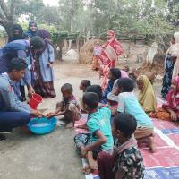 স্বাস্থ্য সুরক্ষা বিষয়ক আলোচনা করি।এবং হাত ধোঁয়ার সকল নিয়ম গুলো তাদের শেখাই। প্রথমে পরিষ্কার পানিতে হাত ভিজিয়ে নিতে হবে। তারপর পর্যাপ্ত পরিমাণ সাবান হাতে ঘষে নিতে হবে। তারপর অন্তত ২০ সেকেন্ড ধরে হাত সব পাশে ঘষে নিতে হবে। হাতে কোনো আংটি বা অন্যান্য গয়না থাকলে তার ওপর-নিচ ভালো করে ঘষে নিতে হবে। দুই হাত একে অপরের সঙ্গে ভালো করে ঘষতে হবে এবং এরপর পরিষ্কার বিশুদ্ধ পানিতে হাত ধুয়ে নিতে হবে। হাত ধোয়া শেষ হলে তা শুকনা পরিষ্কার কাপড় বা টিস্যু দিয়ে ভালো করে মুছে নিতে হবে।