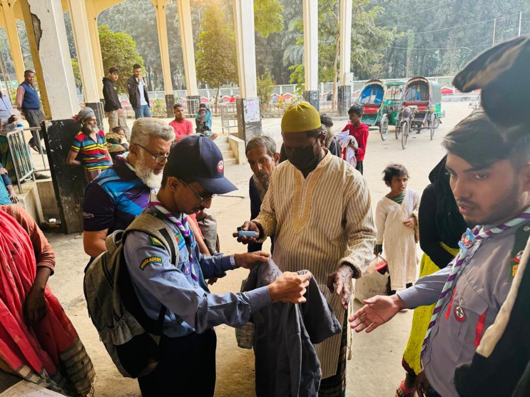 উপ্ত কর্মসূচি-টি গ্রুপ স্কাউট লিডার খন্দকার নাসিম হায়দার (PRS,WB)স্যার এর নেতৃত্বে ট্রুপ ২১ মুক্ত স্কাউট গ্রুপের একদল চাক্ষুস রোভার ২৪/১২/২০২৪ হতে ২৬/১২/২০২৪ তারিখে নিকট আত্মীয় স্বজন এবং দলের সকল সদস্যদের থেকে শীতার্তদের জন্য শীতবস্ত্র সংগ্রহ করা হয় এবং ২৭/১২/২০২৪ তারিখে কমলাপুর রেলওয়ে স্টেশনের সামনে দরিদ্র অসহায়-দের মধ্যে শীতবস্ত্র বিতরণ করা হয়।