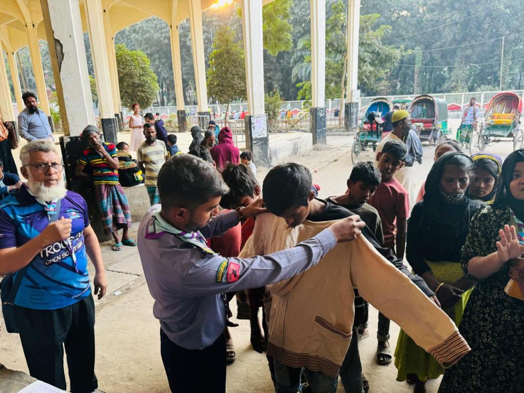 উপ্ত কর্মসূচি-টি গ্রুপ স্কাউট লিডার খন্দকার নাসিম হায়দার (PRS,WB) এর নেতৃত্বে ট্রুপ ২১ মুক্ত স্কাউট গ্রুপের একদল চাকুস রোভার ২৪/১২/২০২৪ হতে ২৬/১২/২০২৪ তারিখ নিকট আত্মীয় স্বজন এবং দলের সকল সদস্যদের থেকে শীতার্তদের জন্য শীতবস্তু সংগ্রহ করা এবং ২৭/১২/২০২৪ তারিখে কমলাপুর রেলওয়ে স্টেশনের সামনে দরিদ্র অসহায়-দের মধ্যে শীতবস্ত্র বিতরণ করা হয়।