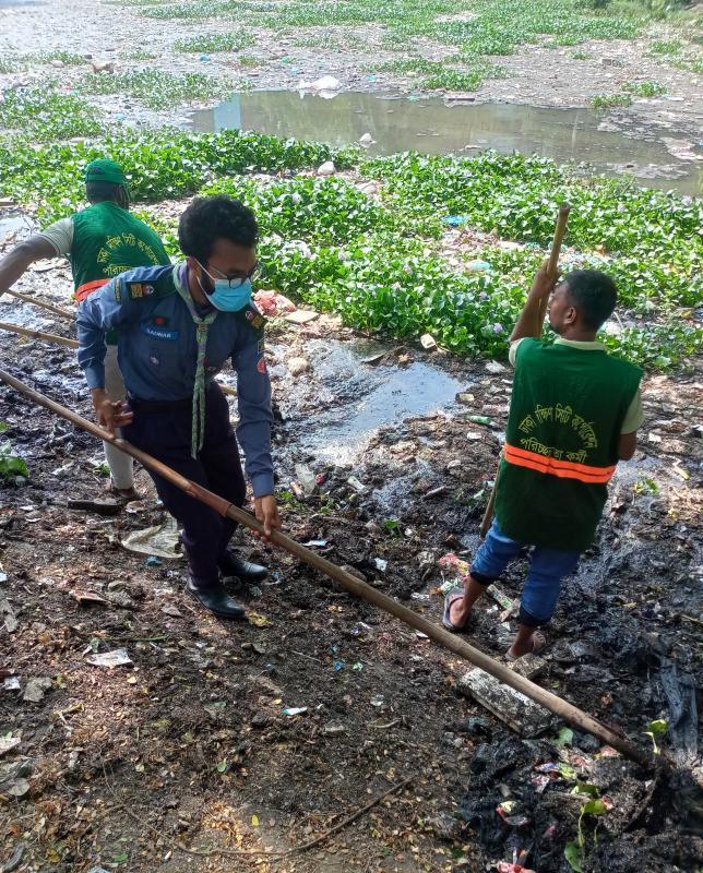 স্কাউট ও রোভারদের সহযোগিতায় ঝিল পরিষ্কার অভিযান।