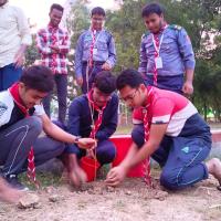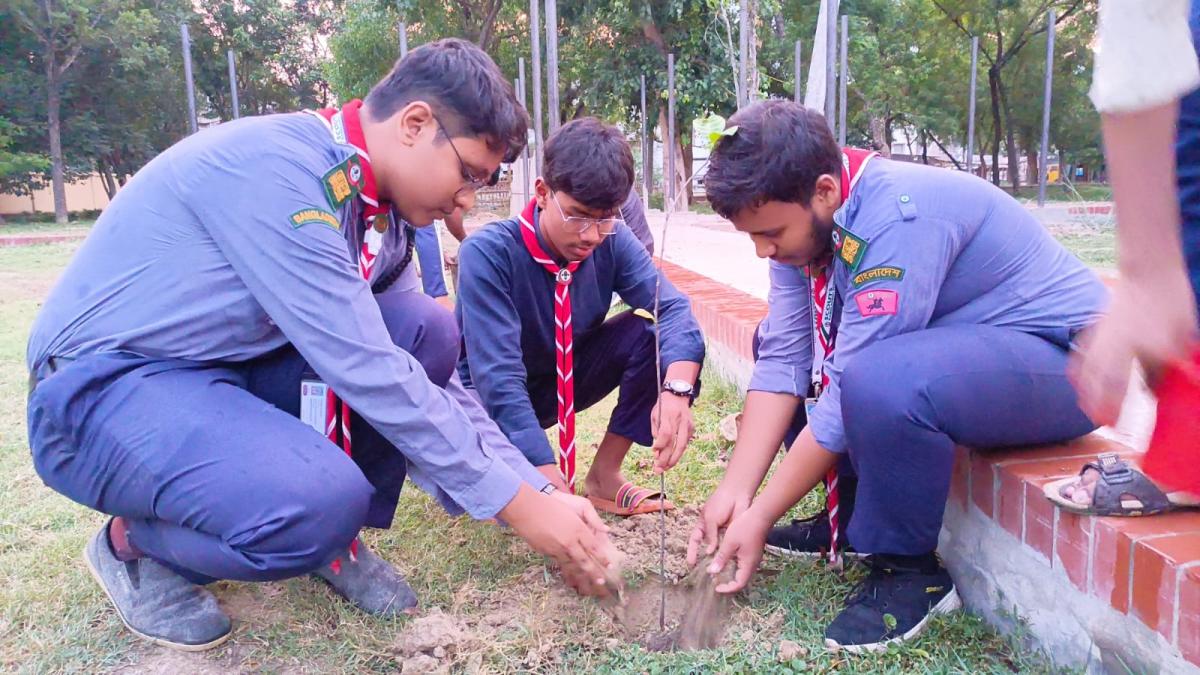 "স্কাউটস, আসো বৃক্ষরোপণ করি,সুন্দর সতেজ পৃথিবী গড়ি"