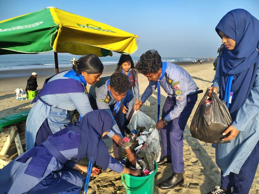 সমুদ্র সৈকত পরিচ্ছন্নতা অভিযানে রোভারদের অংশগ্রহন।