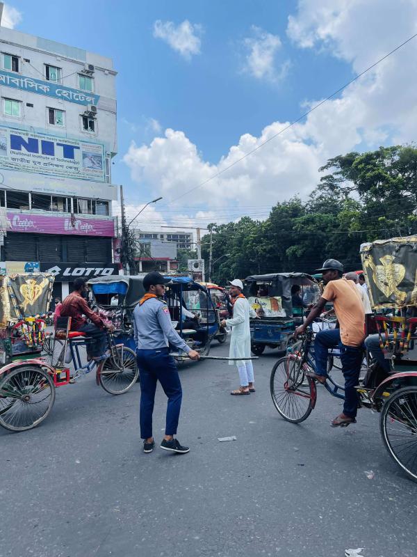 সরকারি শৃঙ্খলা ভেঙে পড়ার সময়, পুলিশ অনুপস্থিত থাকায় আমি ও আরও কয়েকজন স্কাউট স্বেচ্ছায় রাস্তায় নেমে যান চলাচল নিয়ন্ত্রণ করি। এটি জনগণের নিরাপত্তা নিশ্চিত করে এবং বিশৃঙ্খলা রোধে সহায়তা করে।