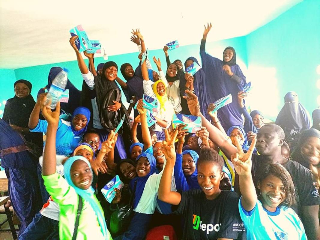 La deuxième étape, la sensibilisation et remise de lingette hygiénique à 1500 filles du Groupe Scolaire Fah Doumbia d'abobo
