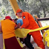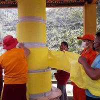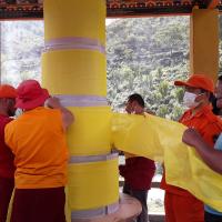Participated in construction of Sangay Menlha's prayer wheel and helping hands for rolling of 'Zung'. The prayer wheel is constructing mainly to eradicate current pandemic.