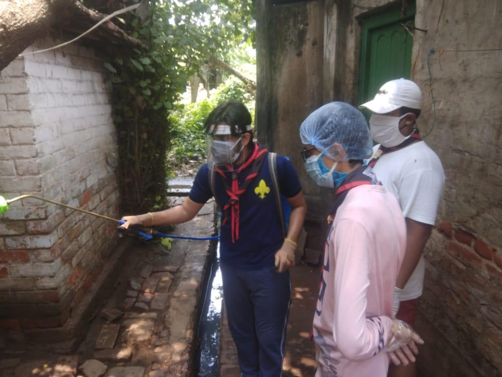 Madhya Howrah Bayam Samity Scouts / Guides Group associated with Madhya Howrah Bayam Samity Club have taken a initiative that to Sanitize the Group area with the spraying by the disinfector guided by the government of India every week