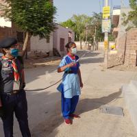 ऐश्वर्या कॉलेज, पुष्टिकर महिला महाविद्यालय और सुरभि ओपन रेंजर टीम जोधपुर के रोवर रेंजर द्वारा लक्ष्मण घाटी के पास की कॉलोनी को सेनिटाइज किया गया।