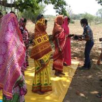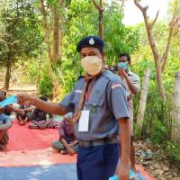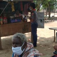 after the diclaration of Government of India about face mask is mandatory to wear and maintain social distance people's were scared. our members started awareness about how to stop spreading carona by wearing mask and and how to keep maintaining social distance. they also distributed mask to the village people and office employees.