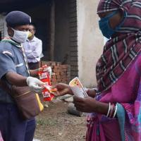in this lockdown period essential foods also be a dream for them. they also packed the essential food items like rice, oil,pattatos,poha, dal in packets and distributed among the people's at door to door step. our 153 members were involved in this project they also preparing mask at home with coordinations of their family members and distributed face mask and leaflets for the safety of local people to stop spreading carona virus.