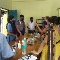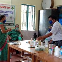 by foreseeing this condition our 32 members were take an initiative steps to open a learning centre for self preparing mask and sanitizer. they learn and make 400 pieces mask per day with 50 no of package bottle hand sanitizers.