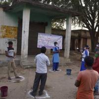our members takes intiative to minimise the risk of spreading carona. they have visited different grocery store and medicine store to drag outline to stand between 1 meter distance for the safety of both customers and shopkeepers.
