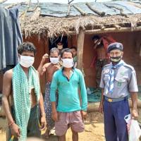 goal of scouting is served for the humanity by foreseeing this pandemic condition our 18 members from different districts were visited to door to door steps for distribution of face mask made by them to the needy people at the interior part of odisha.