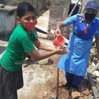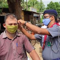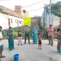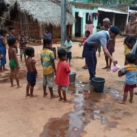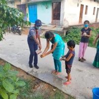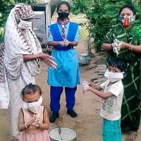 they demonstrate hand washing procedure to them with maintaining social distance and distribute face mask and hand sanitizer to the local Village people.