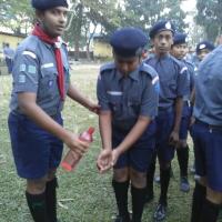 AFTER 3 MONTHS I ATTENDED PRAVESH EXAMINATION . AND I ALSO PASSED THE EXAM WITH GOOD MARKS . THEN AFTER SOME DAYS WE WERE GIVEN PRAVESH BATCH THAT DAY WAS OUR INVESTITURE CEREMONY FROM THAT DAY WE BECAME A PROPER MEMBER OF THE SCOUT SECTION .....