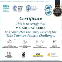 Here is my Certificate of completion the Entry Level of Tide Turners Plastic Challenge.