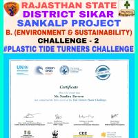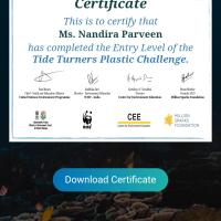 मैंने प्लास्टिक टाइड टर्नर की चुनौती के प्रवेश स्तर को पूरा करके इसका प्रमाण पत्र प्राप्त किया और इसे सोशल नेटवर्किंग साइट पर अपलोड करके लोगों को प्लास्टिक का उपयोग नहीं करने के लिए प्रेरित किया