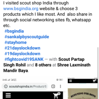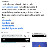 I visited scout shop India through www.bsgindia.org website & choose 3 products which I like most & share in sankalp-bsg facebook page & also share in through social networking sites facbook, whatsapp etc.
