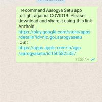 मैंने आरोग्य सेतु ऐप डाउनलोड किया तो मुझे पता चला कि यह ऐप किस तरह कोविड-19 से लड़ने के लिए लाभकारी है मैंने व्हाट्सएप के द्वारा सबको इस ऐप की जानकारी दी और इस ऐप को डाउनलोड करने के लिए प्रेरित किया इसे मैंने अपने सोशल नेटवर्किंग साइट पर अपलोड किया