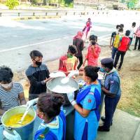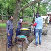 they were packaged daily essential food at their home and distributed it among themselves. another team distributed cooked food at roadside area to the needy migrant workers' those were returning to their native states.
