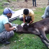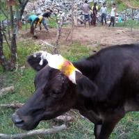 "Save the stray animals" where i see the stray animals i am giving my services there. on 23 august i was received a message from our (ASOC) sir he was told that a cow was injured at Near Patlikuhal aftr receive this message i was go on spot site so i was saw the cow was injured and i was contact to JRB team and we were went to the spot and we are gave the first aid to the cow .