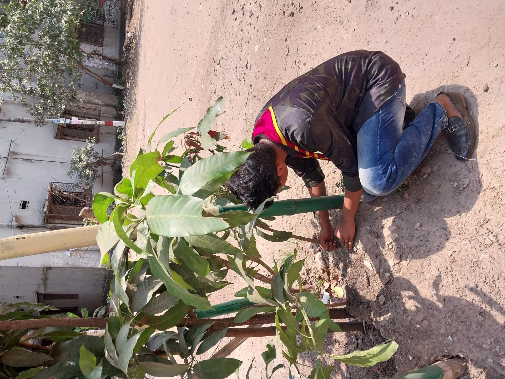 We see empty spaces in different places and take the initiative to plant some trees instead of leaving the empty spaces like this, it will benefit our environment a lot, so let's all plant trees in some empty spaces and play some role in protecting our environment. In this way, we all planted many trees together, it felt very good to us, and we all happily planted trees