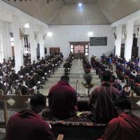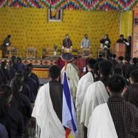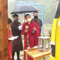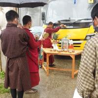 The consecration ceremony for the newly arrived school bus took place on 10th July 2020. The Principal of the sacred Dokhachu Goenpa was invited accompanied by two monks for this ceremony. After the rituals, a marchang and zhudray offering for all took place in the school hall owing to the rainy weather. The school prefects and staff then offered khadars and prayers as well.