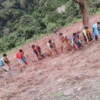 Scout and youth volunteers together in action. Helping our community in clearing and putting maize on the field.