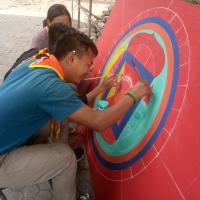 With Scout Monash and Scout Yeshi Dhendup, painting of two Scout Mandala (on plywood) was done which was pioneered by Bhutan Scout Association. The Scout Mandala of BSA displays the principles of scouts and more. It was painted to display at campsite so that scouts participants can understand and inculcate it.