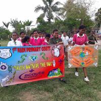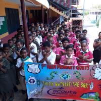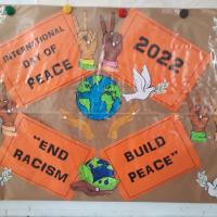 this project was implemented at school level and plans were made with the Head of school and then the scouts and all non scouts were involved in peace building activities. Year groups were involved in songs, planting of trees, peace pledges and marching with some even making poster and doing painting.
