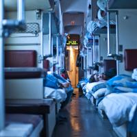 A train with approximately 400 Scouts and Guides, 16 years or older traveling from the 31st July 2014 till 19th August 2014 from Germany via Poland, Belarus and Russia to Baikal Lake.