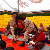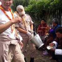 What maybe so intricate for some people, wasn’t at all for the awe- inspired Scouts of Bhutan. 20 Rovers and Community based Scouts (CBS) did the most inspiring thing for a month long religious festival at the memorial Temple, located in the heart of Thimphu City. They invited the elderly people, senior citizens and people with disability to attend a blessing organized by the City Council. Everyday, the rovers and CBS literally carried people with disability, cooked for them and fed them. Besides, the normal chores that they carried out, they also ensured that these people secure the best seats for the religious festival.