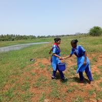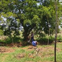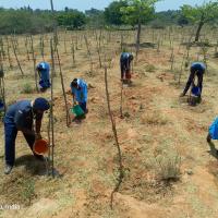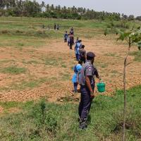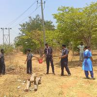 There are about 2000 plants here and the summer is hot and the plants are dry due to lack of water. Today, with the cooperation of Rover Ranger, water was taken from buckets and the plants were watered.