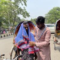 In response to the intense heat affecting Bangladesh and causing severe dehydration and challenging road travel, many rely on rickshaws for their livelihoods. To support them, we’ve launched a campaign to distribute towels. These towels serve as a barrier against the sun and offer a means to cool down when damp, demonstrating our commitment to assisting them through the heatwave.