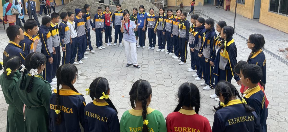 An awareness campaign titled “SDGs in Action” was conducted, focusing primarily on SDG 3 with the inclusion of SDG 17. Five different scout troops in Dharan city were visited, where information about the importance of good mental health, why it matters, and what steps they can take if they need help were shared. Additionally, descriptive information about GYM and the EU was also shared. Some fun yet impactful activities were also carried out during the session.