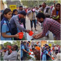 scout,Guide,Rovers & Rangers Give their tremendous service in 14 Kosi Parikrama At Holy Ayodhya.Lakhs of People walk bare foot on Their Lord's RAMA path.Scouts gave snacks and water to these pilgrimage.