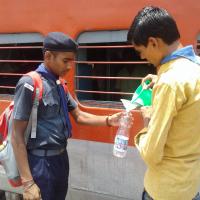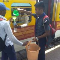 water to traveller traveling by train