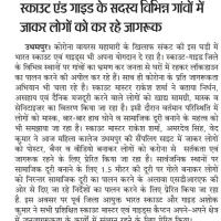 Bharat Scouts and Guides is contributing in this hour of crisis against the corona virus epidemic. Scouts-Guides are visiting villages at various places in the district and appealing to the public to follow the lockdown by staying in their homes. Along with this, awareness campaigns are also being run regarding Corona.