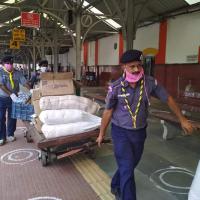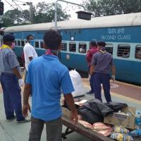 Service at Sramik Special train at Adra station on 2/6/20 by Bharat Scouts and Guides ADRA.