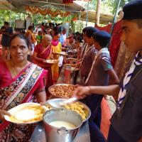We The Bharat Scouts and Guides got a wonderful opportunity to render service at a temple for a day. We got an opportunity to serve food , clean the surroundings and arrange chairs for people to sit. around 25 Scouts and Guides Participated in this service .